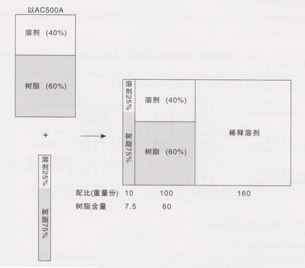 例:將AC-500A/AC-500B稀釋成固體含量25%時